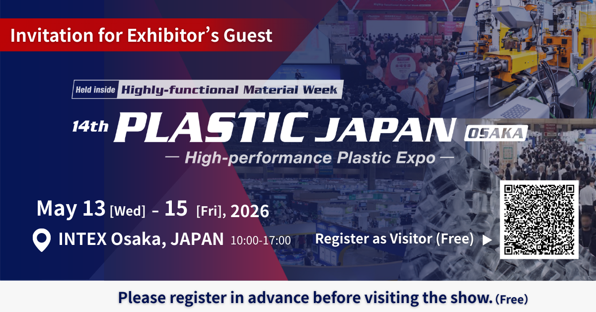 We will be exhibiting at PLASTIC JAPAN Osaka 2026, part of Highly-Functional Material Week, at INTEX Osaka from May 13–15, 2026.